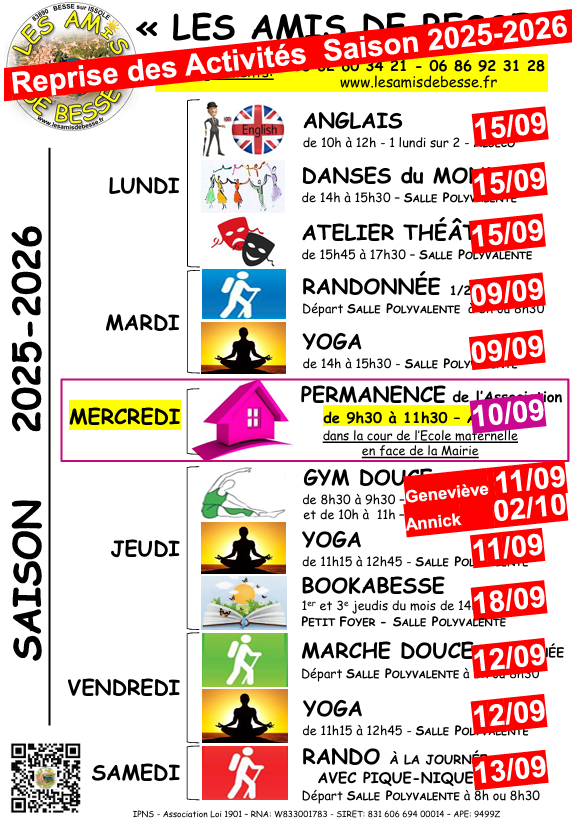 Nous vous demandons, dans la mesure du possible, d'imprimer et de compléter le bulletin d'adhésion ci-dessus préalablement à votre inscription au forum des associations du 6 septembre et à nos permanences du mercredi matin.