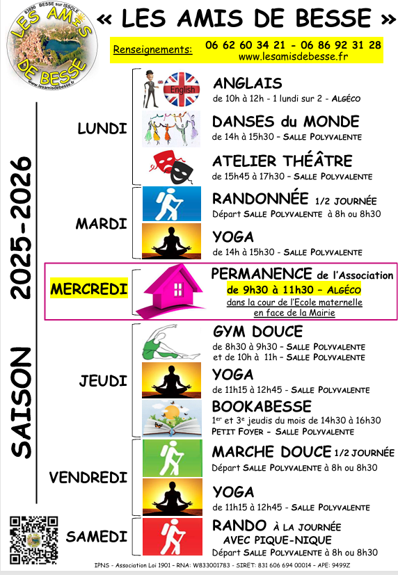 . Un chèque pour le règlement de l'adhésion et de l'activité ou des activités choisies éventuellement.